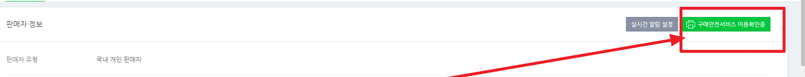 5. 위에서 심사내역 확인을 누르거나 아래와 같이 판매자 정보에 들어가보면 "구매안전 서비스 확인증"메뉴가 보인다.