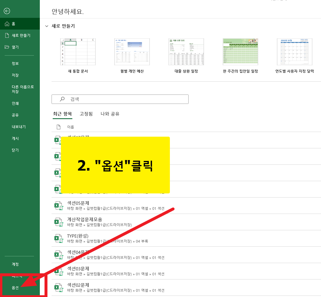 다음으로 아래와 같이 "옵션"을 선택해줍니다.