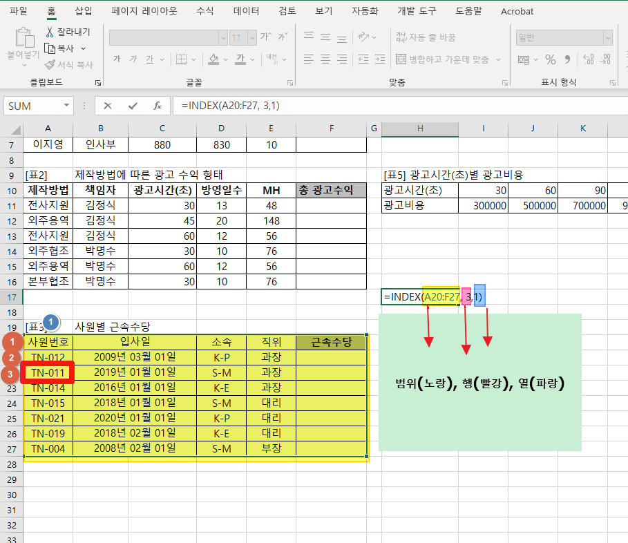 엑셀 INDEX함수 (인덱스 함수)는 한마디로 "위치정보"입니다.